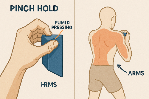 | 핀치 홀드 | 엄지+손가락으로 압착 | 압착력 + 코어 | ★★★★☆ | 볼륨, 사이드풀 |