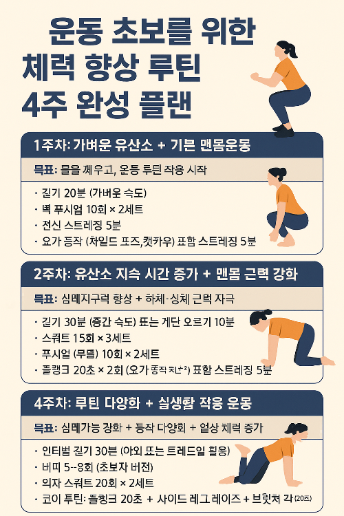 운동 초보자를 위한 4주 체력 향상 루틴 구성