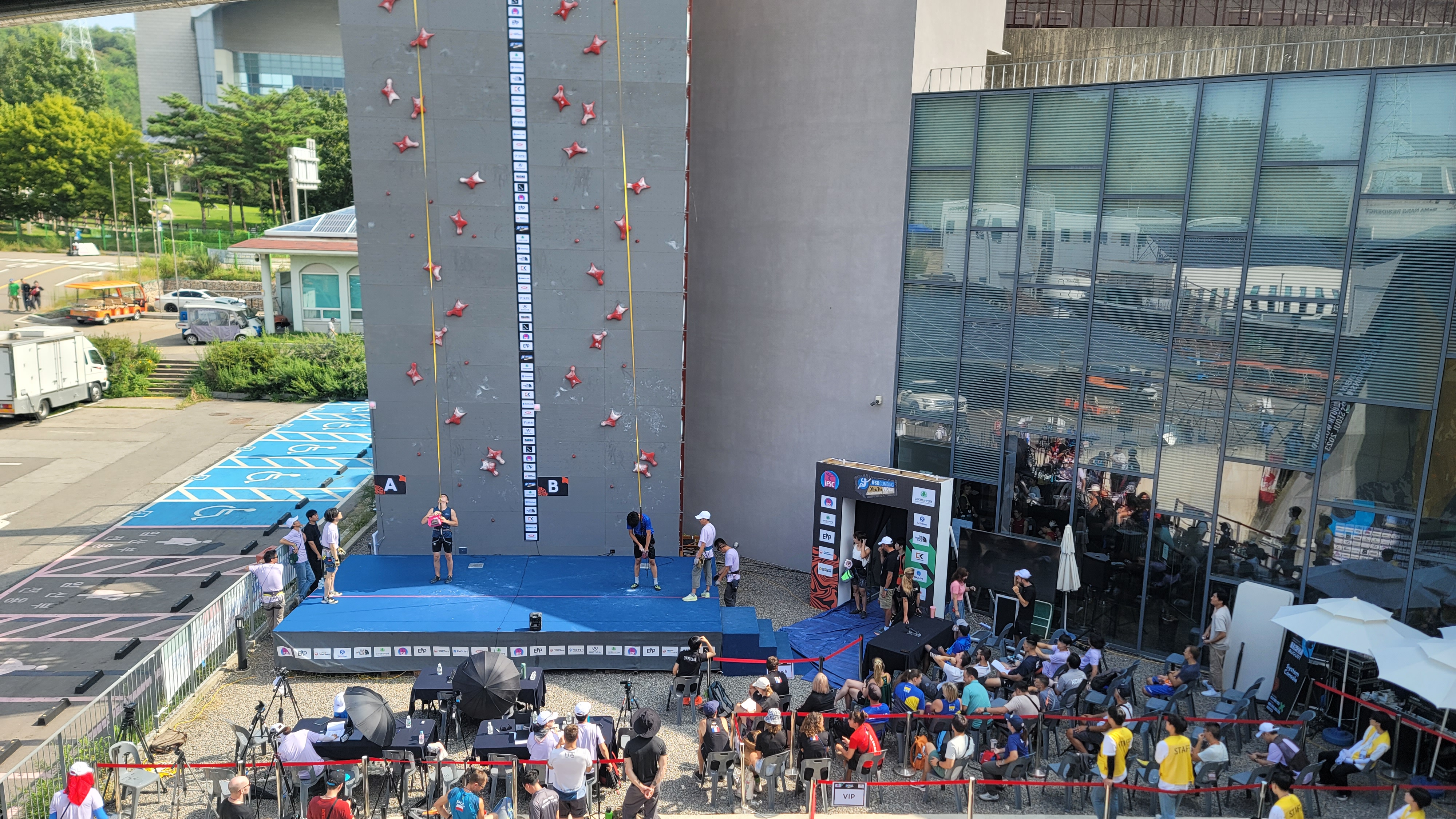 나올 수 있도록 양쪽 벽을 세팅합니다. 출발신호가 떨어지면 선수들은 최 상단을 향하여 빠르게 올라가게 되며, 최 상단의