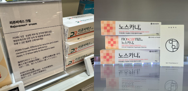 Pharmacies stock **problem-solving products** like acne creams, barrier repair creams, and scar treatments instead of trendy cosmetics.